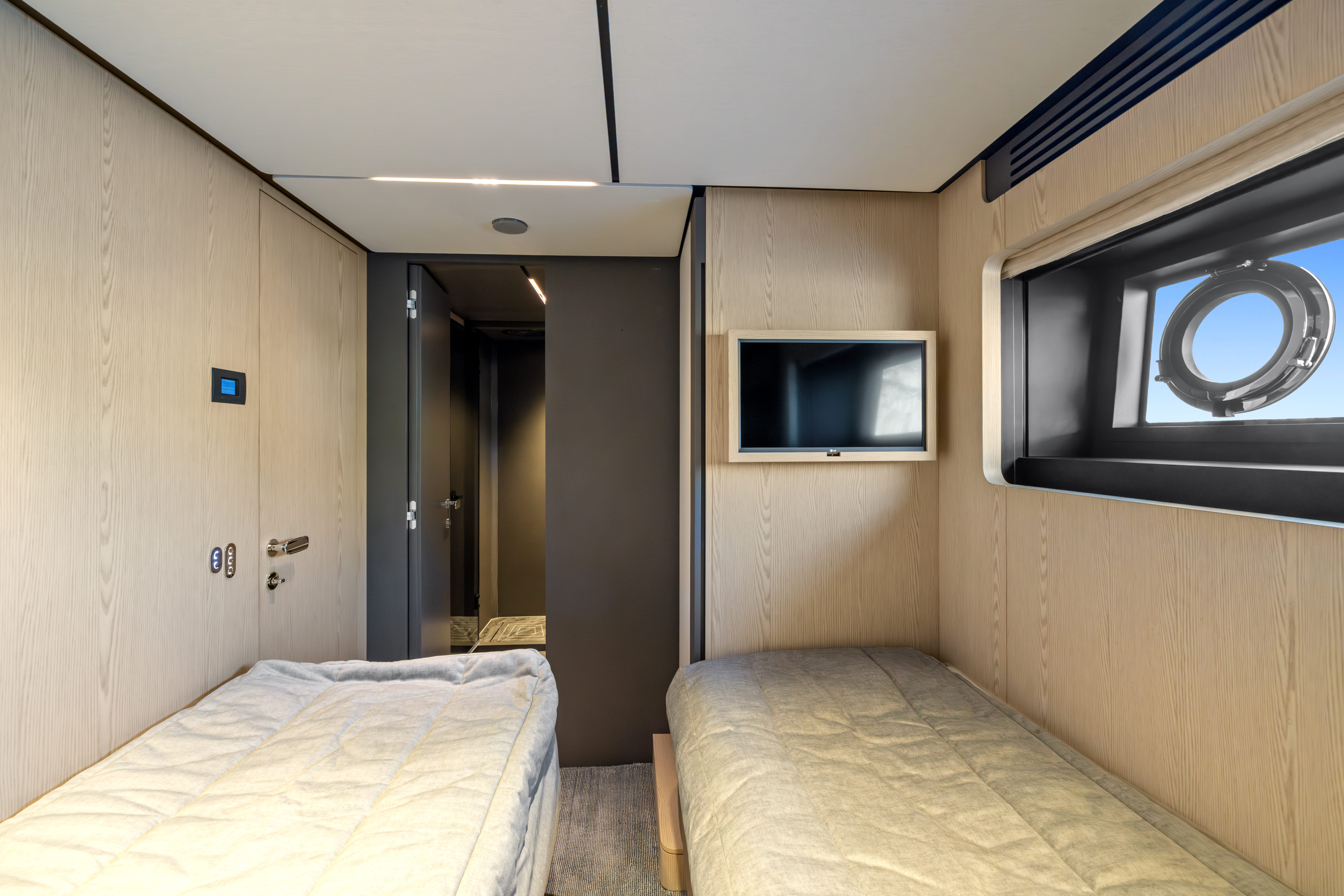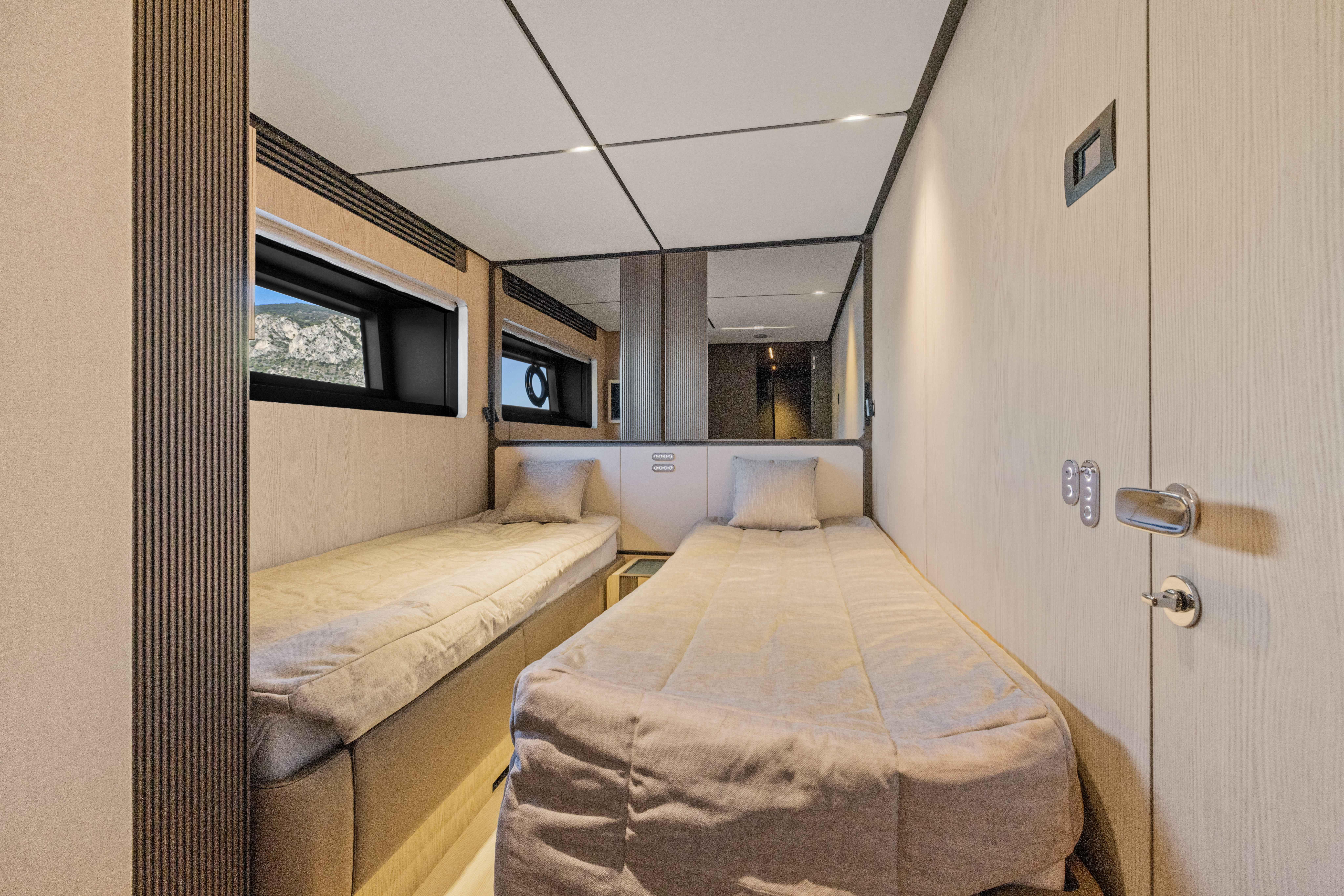 The Ferretti Yachts Infynito 80 represents the new generation of eco-conscious and refined yachts. Launched in 2025, this first-owner model stands out for its contemporary design, impressive volumes, and exceptional comfort. Powered by twin MAN 1400 hp engines and equipped with the exclusive “Hotel Mode” system featuring lithium batteries and solar panels, it offers a perfect balance of power, silence, and autonomy. A rare opportunity to acquire an Infynito 80 immediately available and in as-new condition.